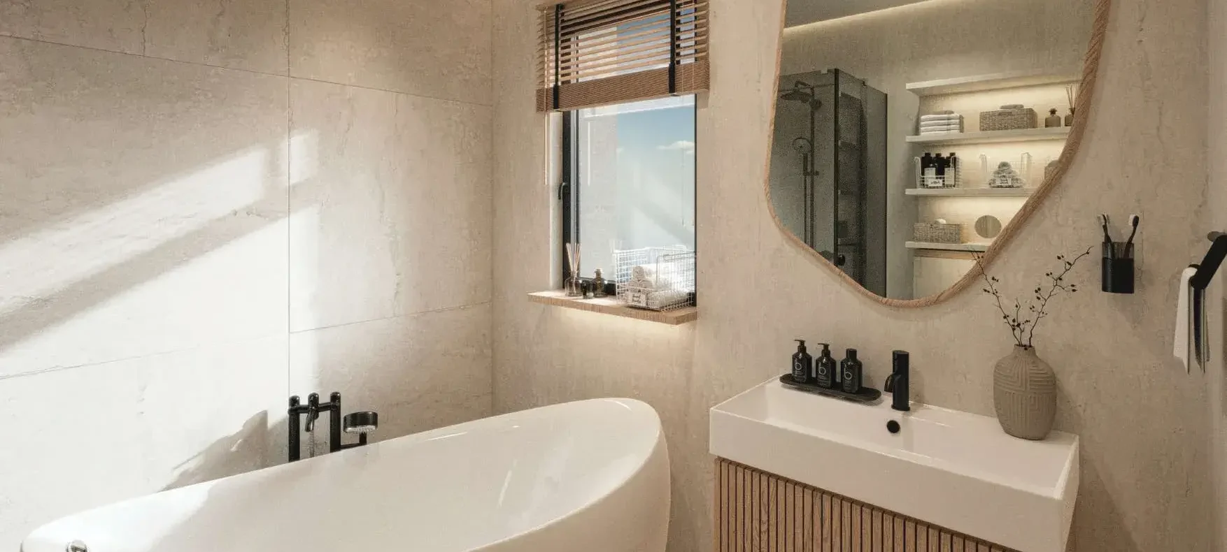 The development offers an elevated lifestyle defined by clarity, openness, and harmonious proportions. Natural light fills the interiors, while the design philosophy emphasizes clean geometry, vertical elegance, and a continuous connection to the horizon. This approach creates living spaces that feel both sophisticated and soothing, offering residents a sanctuary shaped by balance and understated luxury.