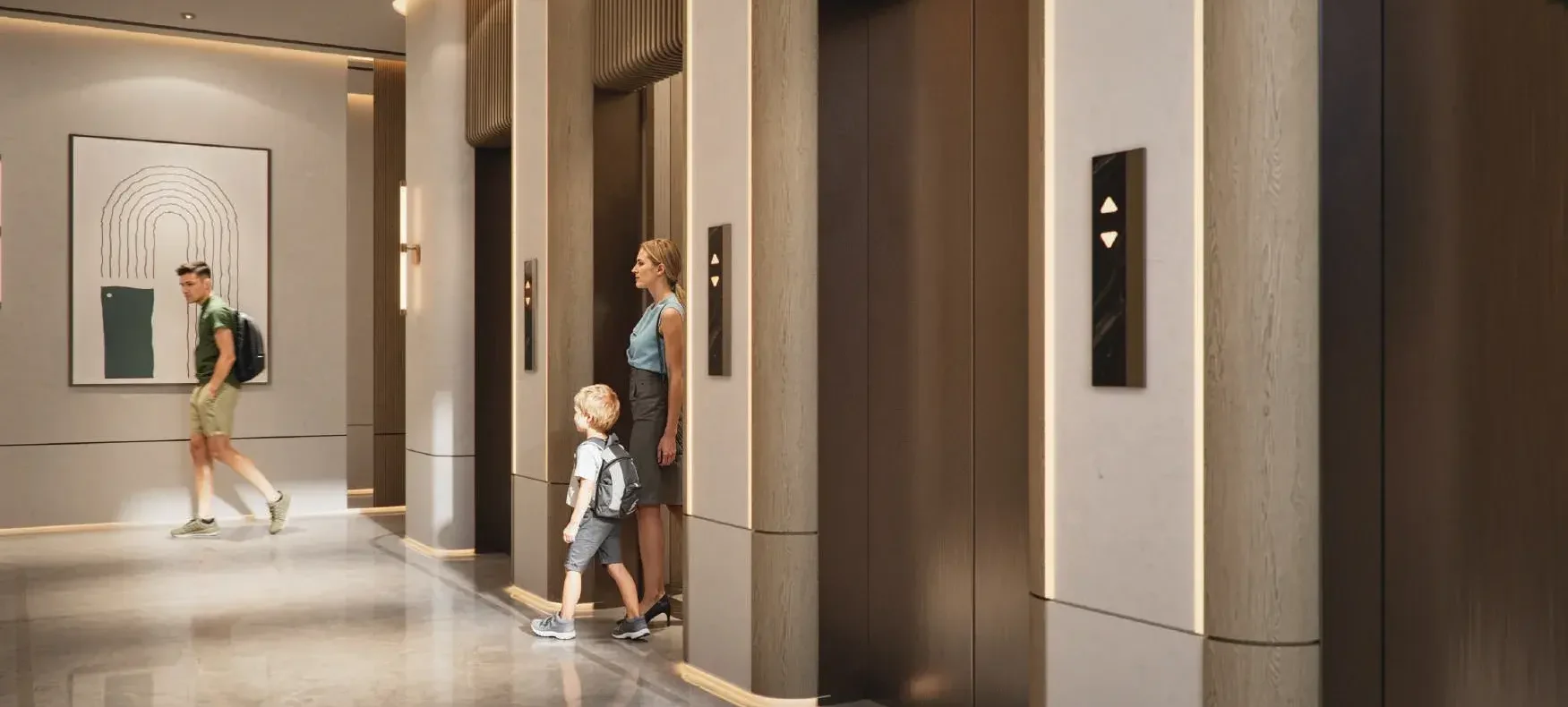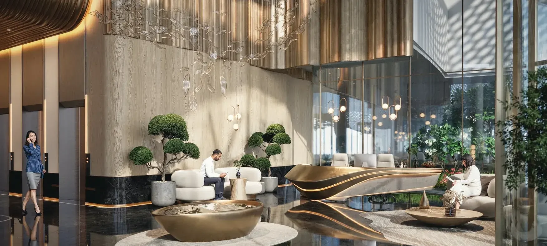 The interiors of Azure are defined by premium materials, modern finishes, and refined decorative elements that mirror the project’s calm, elevated character. The lobby showcases polished surfaces, soft lighting, and warm textures, creating an inviting sense of arrival. Residences feature contemporary design details with clean lines and elegant tones.