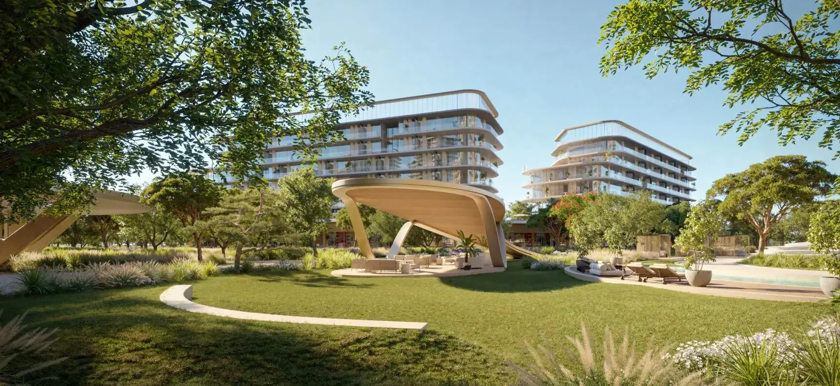 SIØRA occupies a prime position on Island B, offering breathtaking 360-degree views that span the open sea, sheltered coves, and Dubai’s evolving skyline. The masterplan is shaped by Japanese garden principles and holistic wellness concepts, with buildings stepping down toward the beach to preserve uninterrupted vistas and create a strong visual and emotional connection to nature. With over 70% of the land dedicated to open space, SIØRA is defined by fluid landscapes, curated art, and a strong sense of community, making it a distinctive lifestyle destination rather than a conventional residential district.