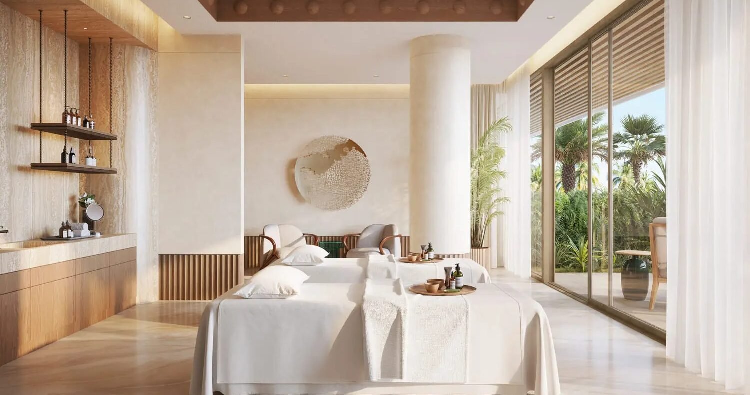 The residences include a refined collection of apartments, garden homes, duplexes, and penthouses, all finished with timeless interiors, natural materials, and expansive glazing. Private pools, serene courtyards, and panoramic terraces elevate the sense of home, while curated amenities — from a spa and wellness lounge to a fitness studio, cinema, and residents’ lounge — enrich daily living. Supported by concierge, valet, and bespoke à la carte services, Solaya reimagines beachfront living in Dubai as a seamless blend of sophistication, privacy, and resort-style comfort.
